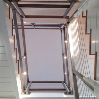 On this coastal site subject to high winds and flooding, governmental review and permitting authorities overlap and combine to create some pret-ty tough weather of their own. On the relatively small footprint available for construction, this house was stacked in functional layers: Entry and kids' spaces are on the ground level. The Master Suite is tucked under the eaves (pried-open to distant views) on the third floor, and the middle level is wide-open from outside wall to outside wall for entertaining and sweeping views.