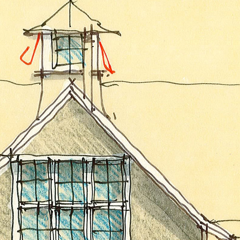 United by a common wildflower meadow and designed to entice distant family members into holiday and vacation time together, each of these little buildings serves an autonomous function in place of the very big house they might together have become. A two-bedroom studio and a four-bedroom cottage embrace the central meadow. Facing South over the meadow, a deep covered porch shields the central great room from summer sun. A three-car garage shapes the entry court and hosts a large solar array.